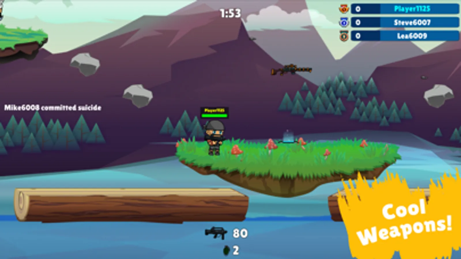 - Different characters can be obtained through the game. Each of them starts with their own weapon, which also can be found from the spawn points during the match.