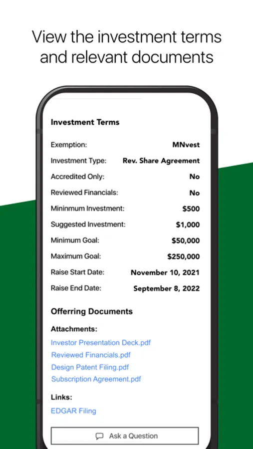 Investments appearing on this portal involve significant risks including, illiquidity, no guarantee of returns, and possible loss of principal invested.