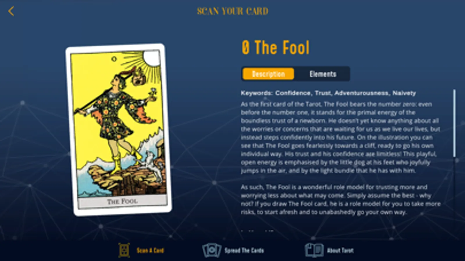 Experience a new dimension of card reading! Pick a card from your Tarot of A.E. Waite iCards and hold it under the camera of your phone or tablet so that the upper right circle is recognized. Automatically you get the interpretation of the card displayed, you can integrate the card into different reading patterns and save each reading with notes and date. This way you can create your own tarot diary. In addition, magnifying glass effects explain the symbols of the Major Arcana in detail.