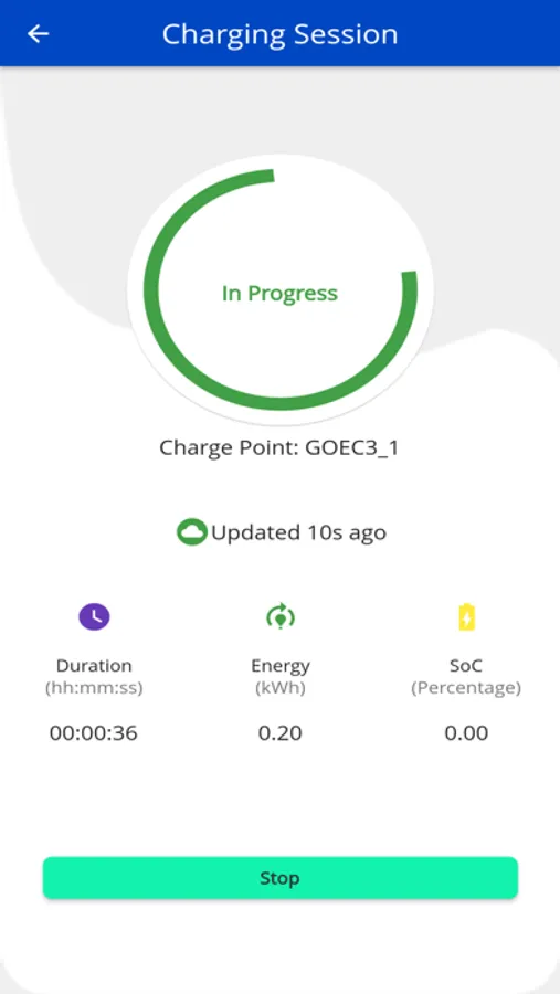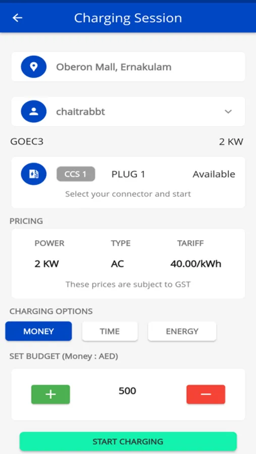 . Simple scan action, select type of charging (Time/Energy) and proceed.
