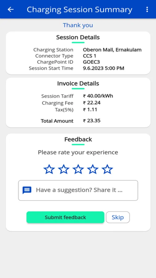 . You can register directly on the app, top-up the credit balance to charge your EV using any online payment method ( Credit card / Debit card / UPI / Wallets )