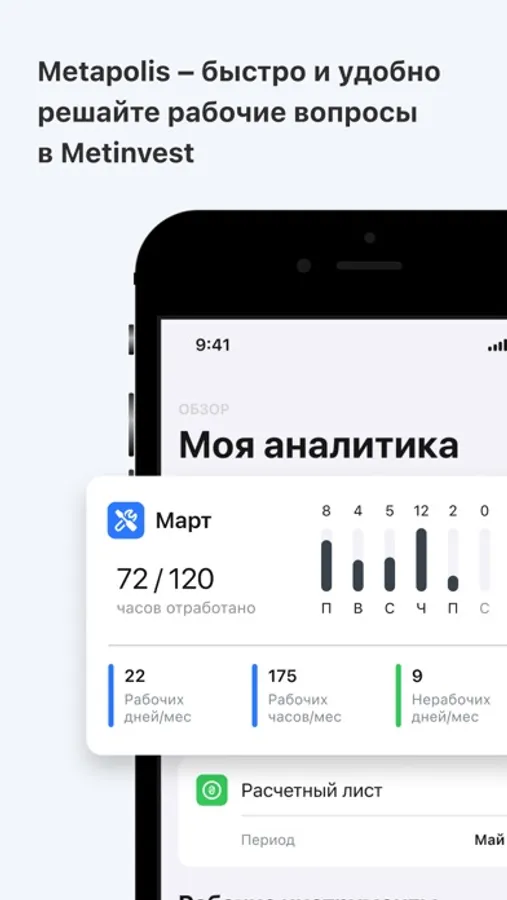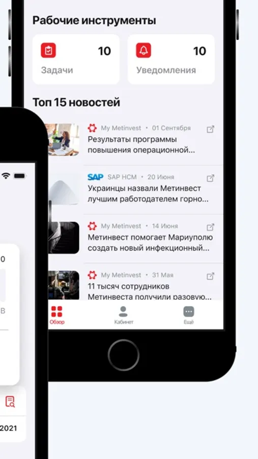- Центр уведомлений: персональная лента новостей предприятия и компании, актуальные производственные показатели, портал my.metinvestholding.com, новости из корпоративной социальной сети Yammer.