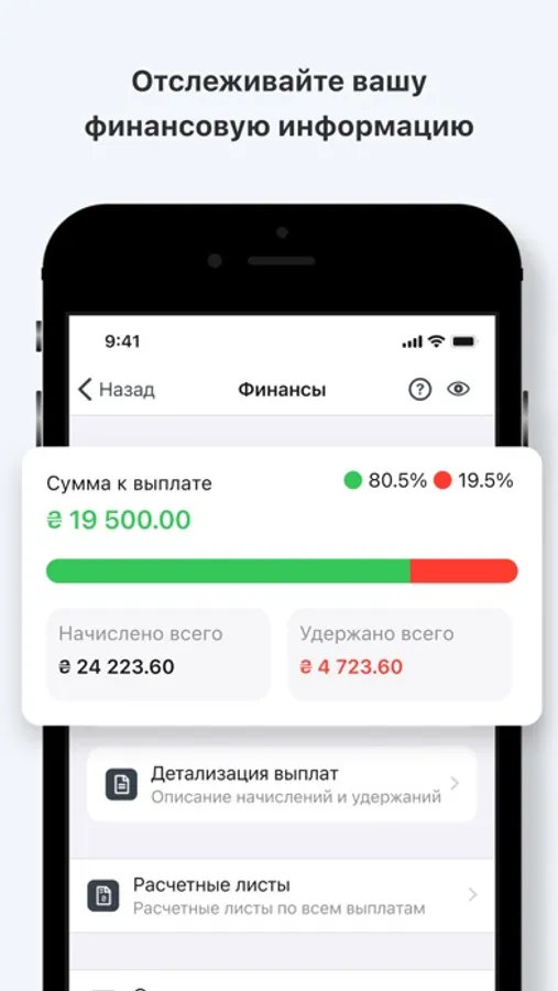 - Для руководителей: списки сотрудников, просмотр их финансов, рабочих графиков и отсутствий.