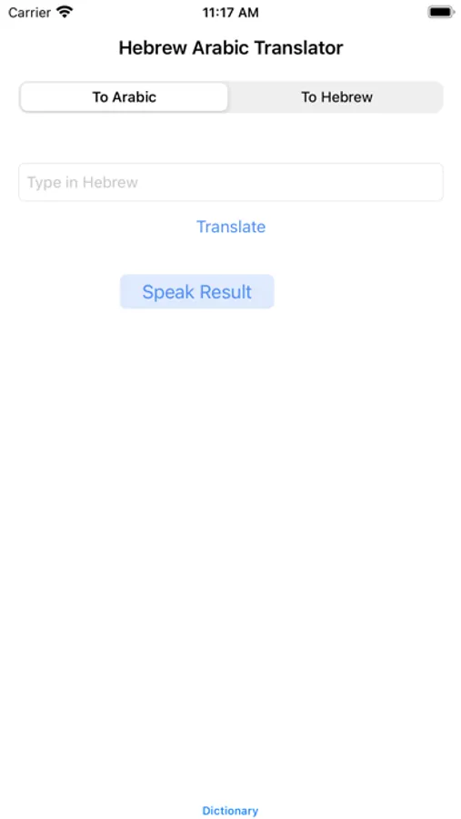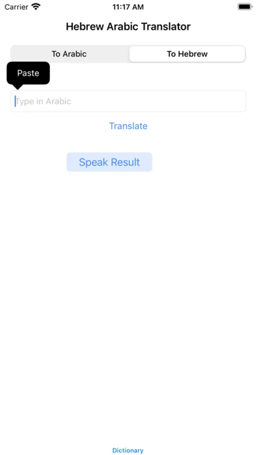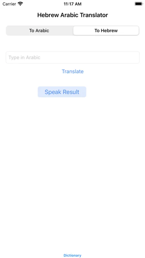 This app allows you to translate Hebrew to Arabic or Arabic to Hebrew, not limited to a single word, you can translate multiple sentences. After you have results you can press Speak Result button for hear to words