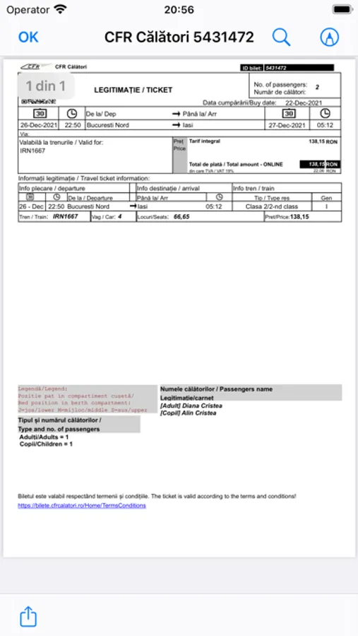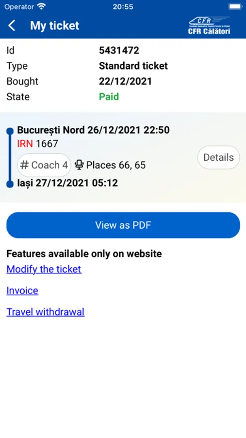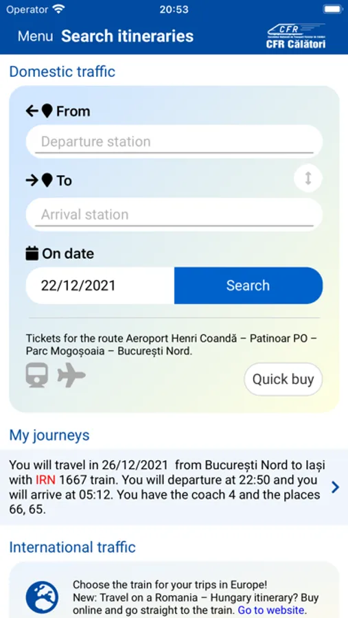 Buying tickets online is very easy. You need a CFR Călători account that you easily create with your email. Select the departure and destination stations and select the train with the hours that fits for you. Choose which class you are travelling to and the number of passengers. After you see the transaction price, you will fill in the passengers' first and last names. At the end, enter your card details and complete the order. You will receive in the app, by SMS and email an Id (ticket identification number) that you show to the conductor at checking tickets. Simple!