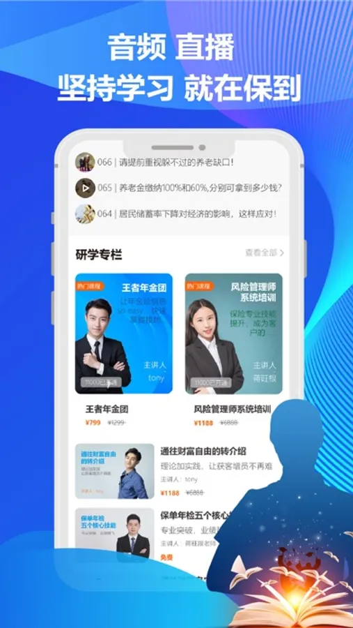 保到,旨在为保险从业者提供“真正专业,真正现实”的专业知识服务工具,提倡以“碎片化+系统化+场景化+技能化”的逻辑学习方式,让用户根据自身的需求获得有效的知识。在落地实际的知识分享同时,保到还提供计算、展业、核保、对比、保单托管功能。保到,让保险因实学而真正专业。