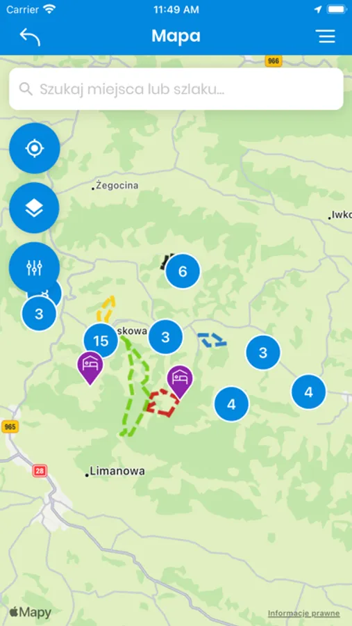 Aplikacja zawiera propozycje tras pieszych – każda z tras zaznaczona została na mapie offline, a dzięki technologii GPS użytkownik widzi podczas wycieczki swoją dokładną pozycję. W aplikacji zaznaczono też obiekty warte uwagi, atrakcje turystyczne i zabytki wraz z fotografiami i opisem. Użytkownik znajdzie tutaj również miejsca praktyczne takie jak noclegi.