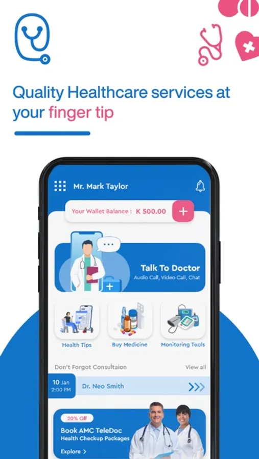 Save your time on waiting for a doctor at clinics and hospital. With AMC Teledoc, you can