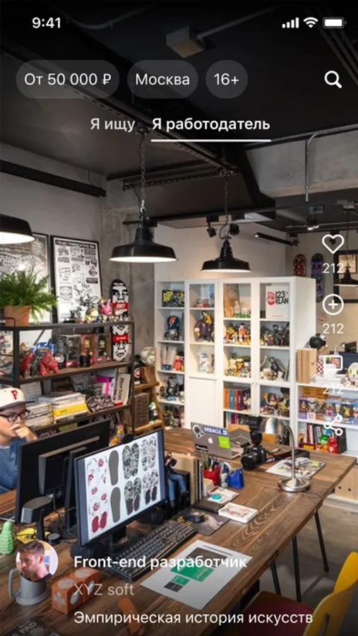 Я работодатель. Есть потребность в молодых специалистах? Публикуй видео вакансии и заинтересуй аудиторию приложения. Просматривай резюме и оценивай их, а затем находи подходящих сотрудников.