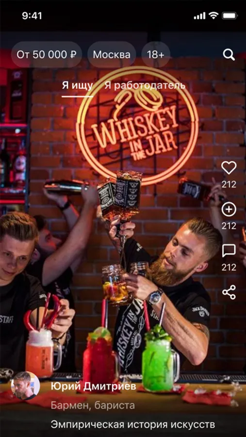 Я ищу работу. Публикуй своё видео резюме, а затем оценивай и комментируй ролики с вакансиями от работодателей – и приложение самостоятельно создаст диалог с представителем понравившейся тебе компании для дальнейшего обсуждения трудоустройства.