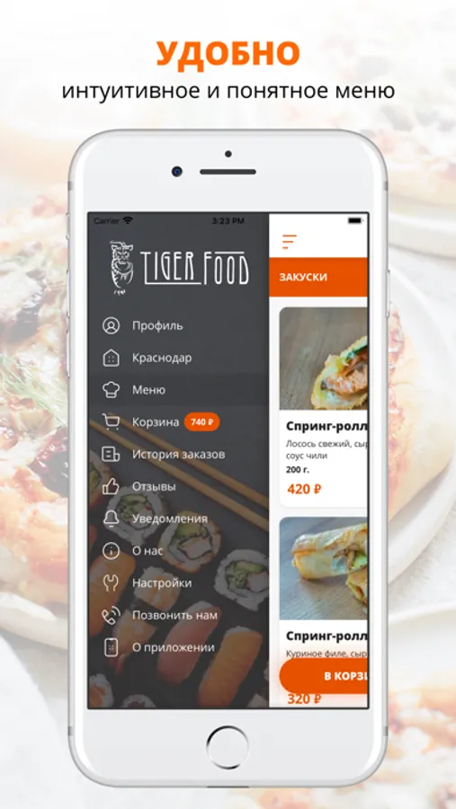 Приложение TigerFood | Краснодар — это удобный способ заказа еды домой или в офис! Мы готовим наши блюда из качественных свежих ингредиентов и доставляем еду по Краснодару быстро и бережно.