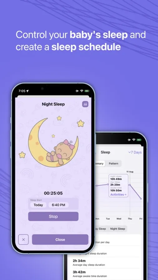 SLEEP. Use the sleep timer to mark when your baby falls asleep and wakes up. Control the number of daytime naps and the duration of nighttime sleep. Assess the quality of your baby's sleep.