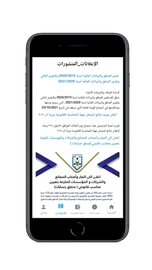 If you are a member of the Association of Certified Public Accountants, our mobile application will help you find all your needs to communicate with the Association with ease and ease. It doesn't matter whether you are at home, work or on the road. As long as you are subscribed to the application, you can connect and inquire with the association about any question that comes to you. While registering in our mobile application, you will be able to continuously view information related to the profession, members (Chartered Accountants), books, magazines, and professional and scientific periodicals issued. Our mobile application facilitates the speed of documenting the budget approved by the association through the QR code feature and gives you confirmation of the authenticity of the authenticated signature. Our mobile application is an easy to use application with many features. It is easy for you to view the advertisements periodically by simply clicking on the advertisements icon. The mobile application gives you the option to change your account information at any time. Our application helps us organize the practice of the legal accounting profession and ensure adherence to accounting standards, auditing standards and the approved standards of professional conduct in a way that contributes to protecting the Jordanian national economy, raising the scientific and professional level of Jordanian legal accountants, and enhancing Jordan’s position Arab, regionally and internationally in this field.