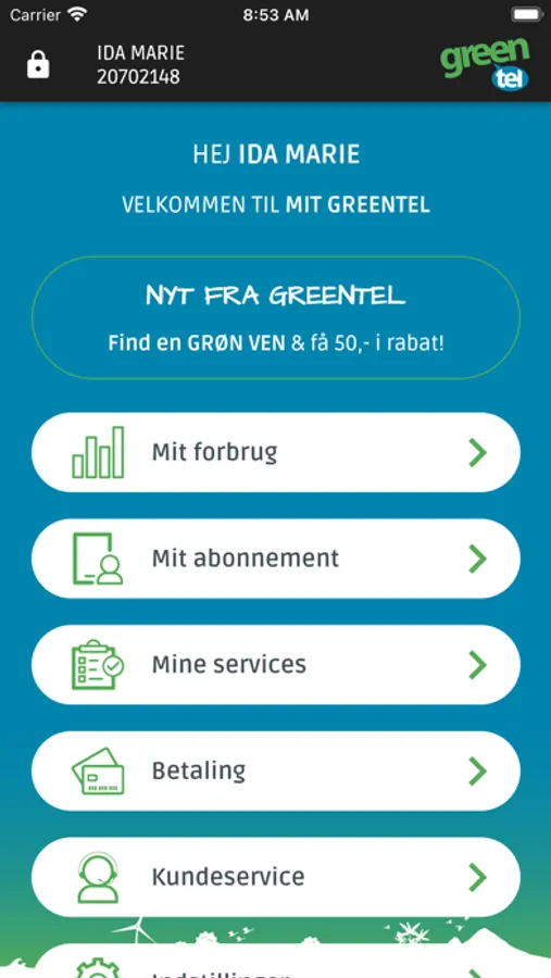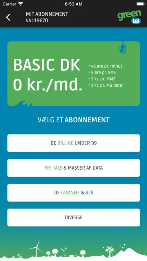 Greentels app giver dig fuld kontrol over dit abonnement via mobilen. Med Mit Greentel kan du nemt og hurtigt: