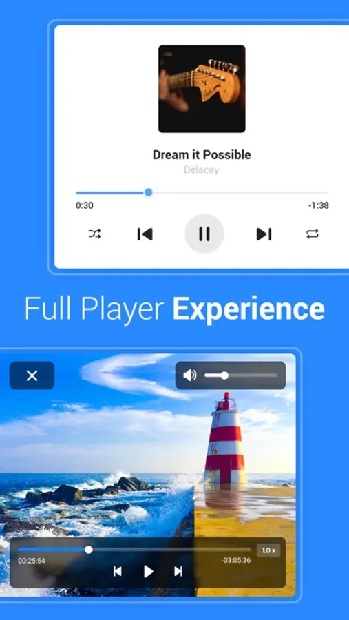 • Multiple file formats support: Open videos, music, documents, and compressed files with one tap.