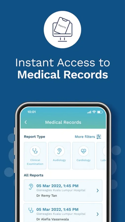Instant access to you and your family’s medical reports that include Lab Test Results, Trends & History, Radiology Report and Rehab History.