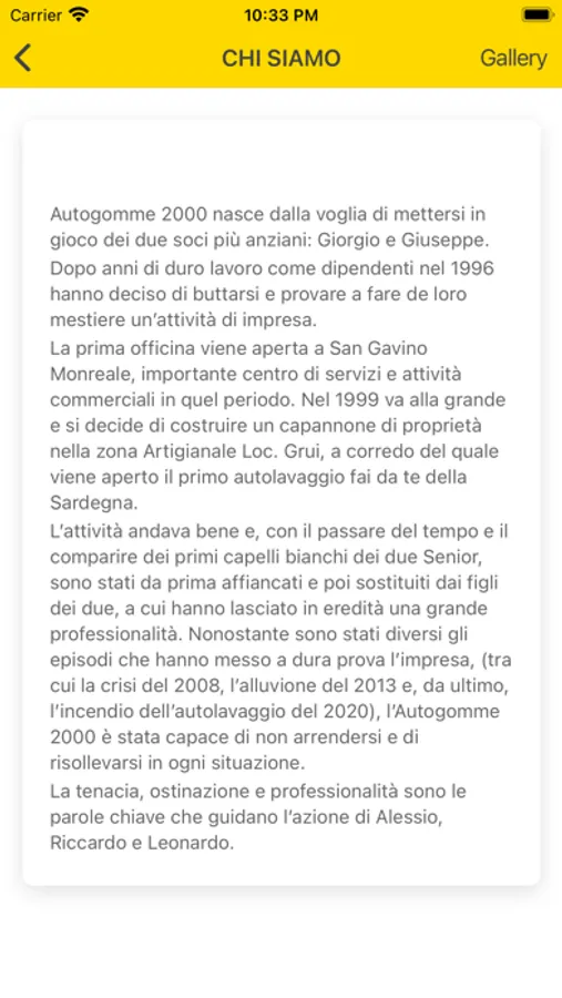 L'App di Autogomme 2000 permette di ricevere notifiche, conoscere la storia dell'azienda, visionare le varie tipologie di prodotti e servizi offerti, di usufruire di Coupon di sconto e della Fidelity Card, con cui accumulare punti per ricevere diverse tipologie di premi.