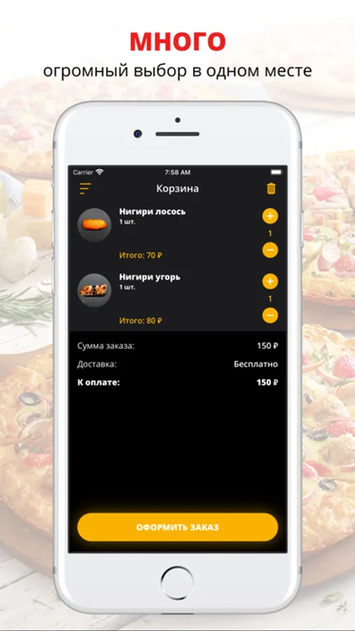 Скачивайте наше приложение, оформляйте заказ и наслаждайтесь любимой едой, где бы Вы ни были! Приятного аппетита!