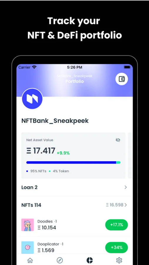 For those who use NFT as loan collateral, you don’t need to visit a lending protocol website one by one. See a whole list of NFT loans and details (Loan terms, price changes) in your portfolio, updated hourly.