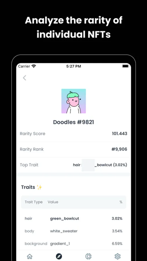 Understand the estimated value of NFTs based on NFTBank’s world class ML model. Check the prediction accuracy & rarity score of every NFT for 5000+ collections.
