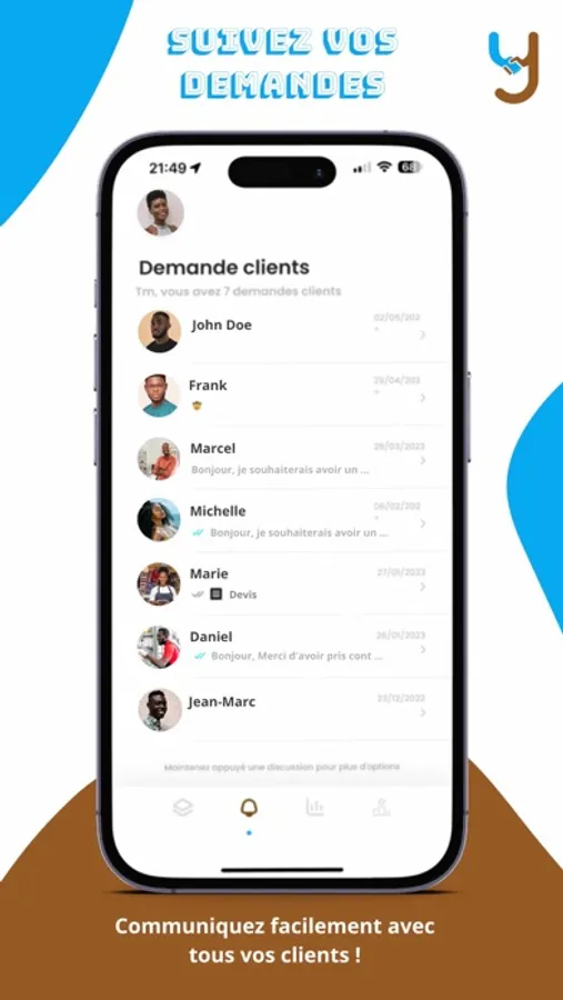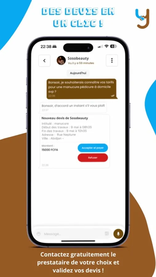 Notre application est conçue pour être rapide, conviviale et sécurisée. Vous pouvez gérer vos demandes de services, prendre rendez-vous en ligne et suivre l'avancement de vos projets en toute simplicité. De plus, Yobi garantit la fiabilité des prestataires en mettant en place un système de notation par les clients.