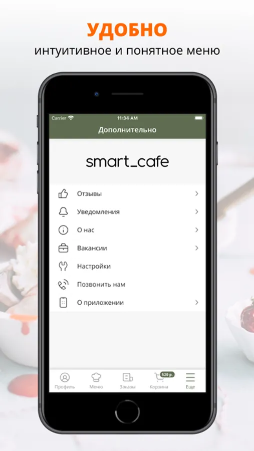 В основе концепции Smart_cafe лежит идея закрыть ежедневные потребности современного человека, который всегда находится в движении, занят работой или учёбой, предпочитает качественную еду и знает, что такое «хороший кофе».