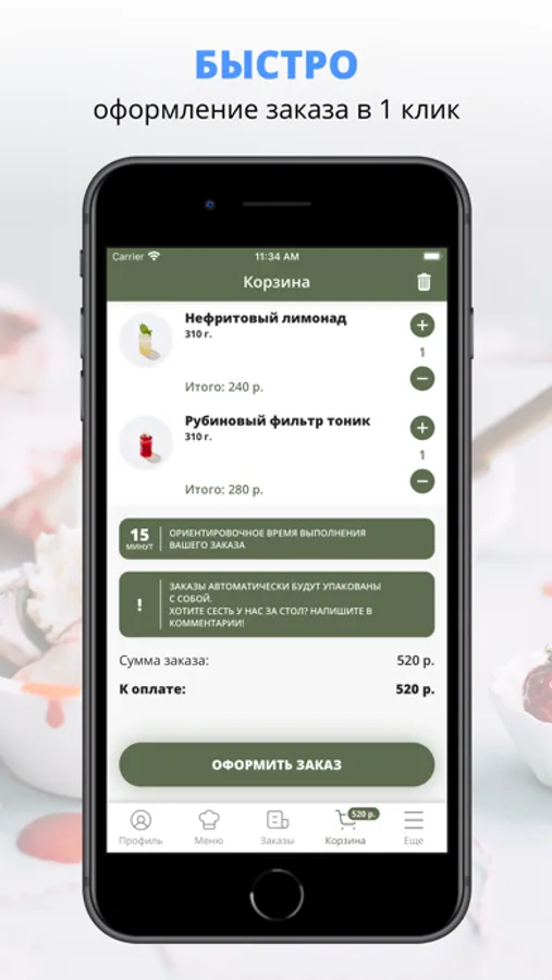 Мы стремимся облегчить жизнь наших гостей, экономить их время, даря заряд бодрости и положительных эмоций качественным, вкусным продуктом и хорошим обслуживанием. Здесь каждый найдёт что-то по душе: и приверженцы здорового питания, и те, кто знает, как себя побаловать.