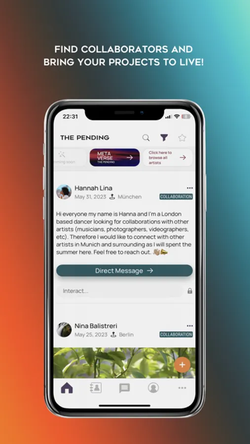 A growing community platform for artists from all fields that connects easily and directly, both digitally and virtually.