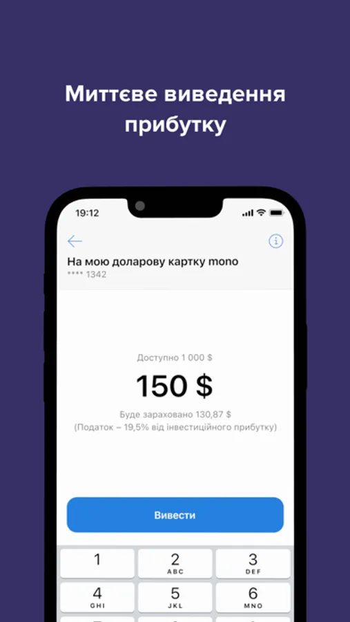 Виводьте прибуток із брокерського рахунку на доларову картку миттєво.