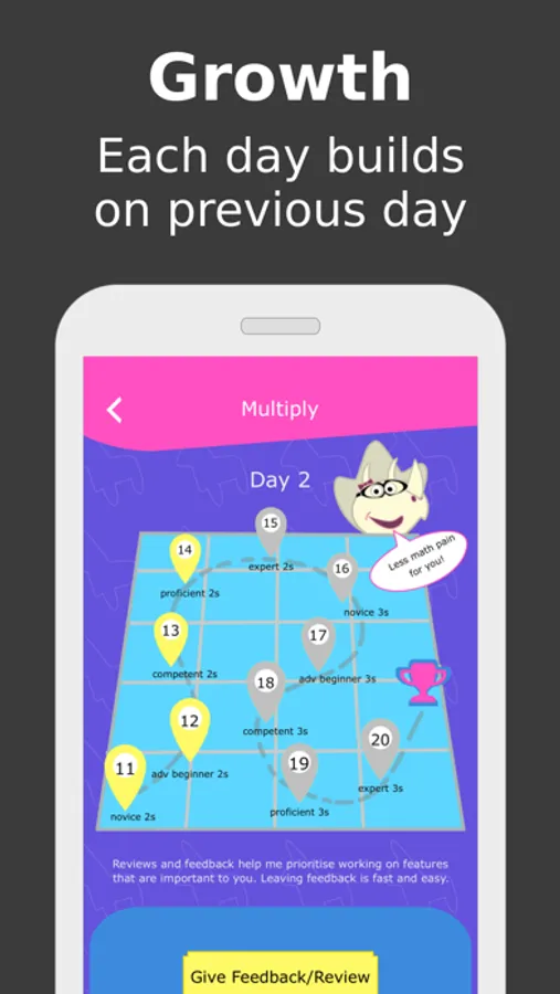 Each digit has 30 questions starting off easy and gradually increasing in difficulty. There are no word problems just multiplication questions.
