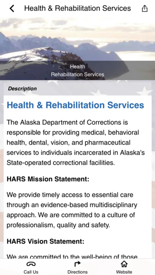 On behalf of the men and women of the Division of Health and Rehabilitation Services, welcome to our app. This app is for the employees and family members of the Division of Health and Rehabilitation Services as well as the community they serve. It contains information about our division as well as safety and crime prevention tips. Division of Health and Rehabilitation Services employees will have access to a full range of wellness tools.