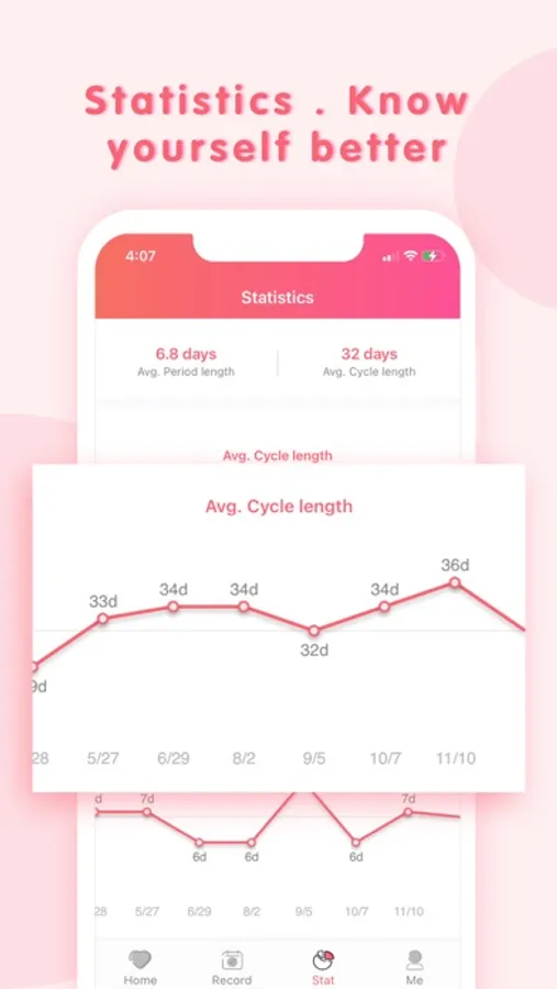 * Display the menstrual cycle in the form of a chart and provide an average value to help you better understand your menstrual situation