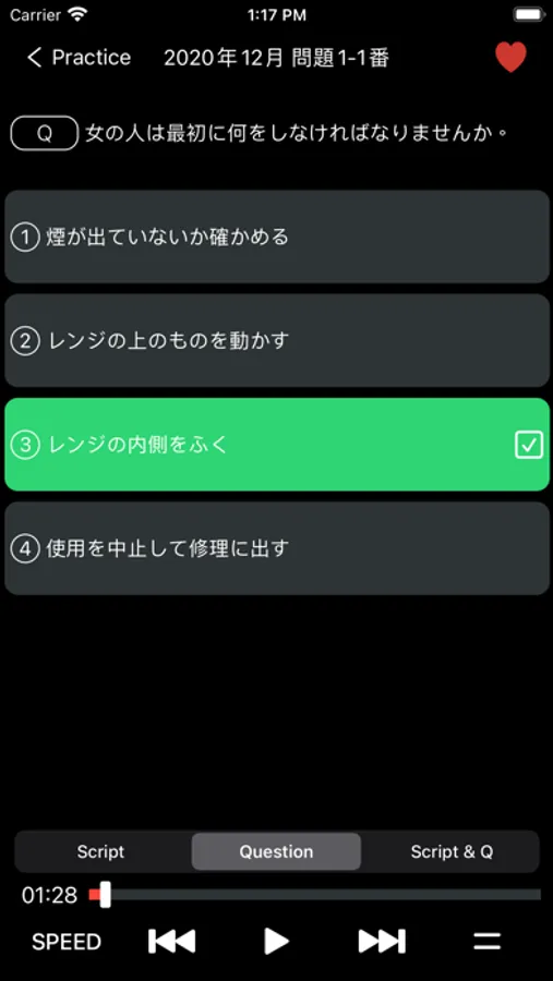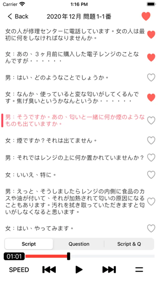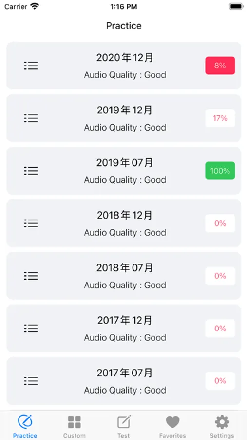 This is a Japanese listening practice app for the Japanese Language Proficiency Test N1.