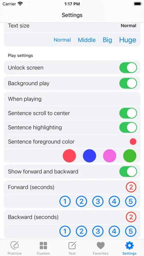 Forward and Backward the Audio(1, 2, 3, 4, 5 seconds can be choose).