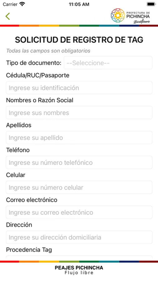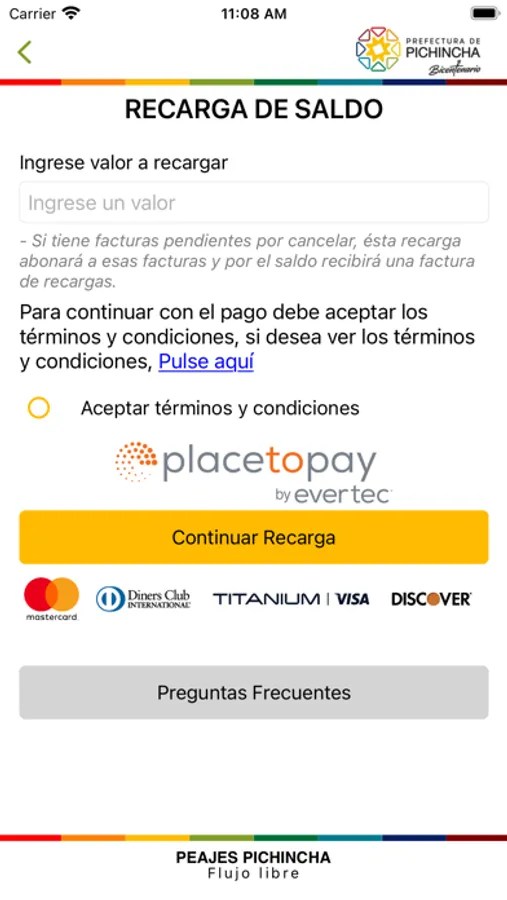 Aplicación gestor de los Peajes Pichincha(Autopista Gral Rumiñahui, Collacoto e Intervalles) desde el cual podrá realizar los mismos trámites en línea existentes en la página web www.peajespichincha.ec, que son los siguientes.