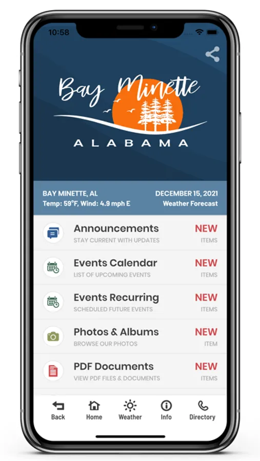 Welcome to the beautiful City of Bay Minette! Whether a visitor or a resident, this app is designed to connect you with all our great city has to offer. Download this app to view public meetings, receive important alerts, download forms, and much more!