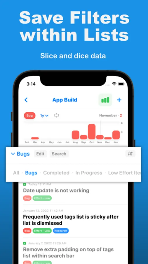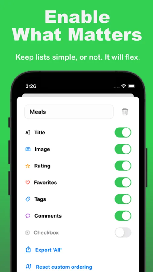 -Customize lists with tags, text, images, checkboxes, ratings, comments and links
