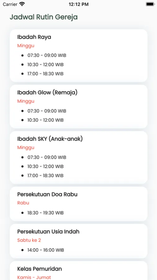 - Informasi jadwal gereja yang terupdate