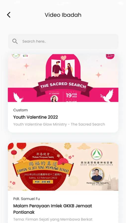 - Streaming video ibadah