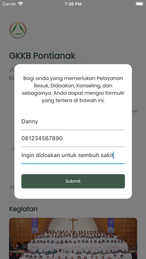 - Mengirimkan formula permohonan doa bagi anda yang memerlukan pelayanan besuk, didoakan, konseling dan sebagainya