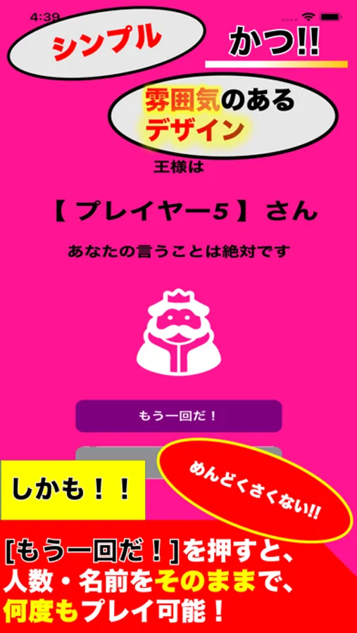 『王様ゲーム オフライン』はみんなの中から王様を選んでくれます。