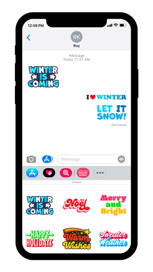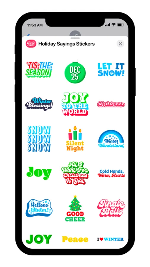 Winter holiday sayings to send to your friends and family in Messages. Themes include Christmas, snow, New Year, Peace, Love and warm wishes.