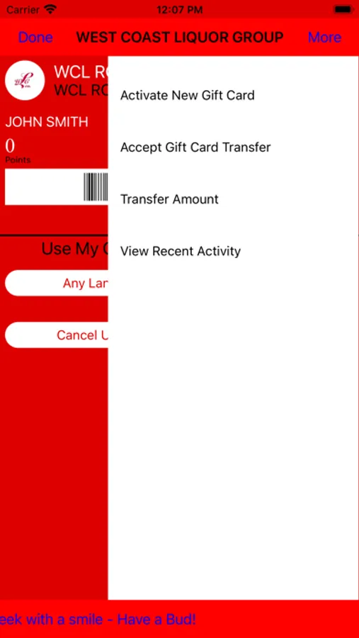 Customer App to allow the user to view and access their VIP and Gift Card accounts for the West Coast Liquor Group.