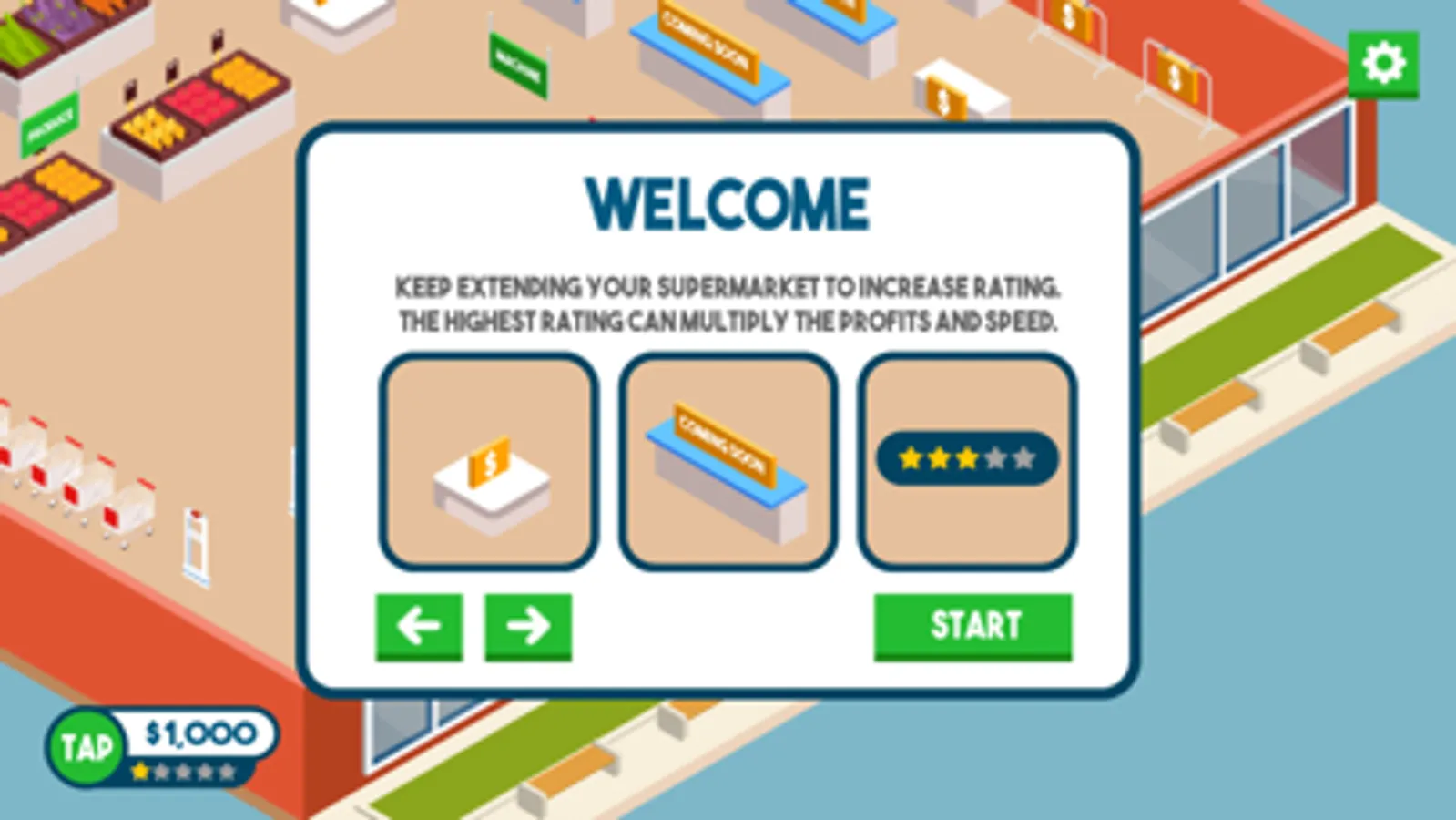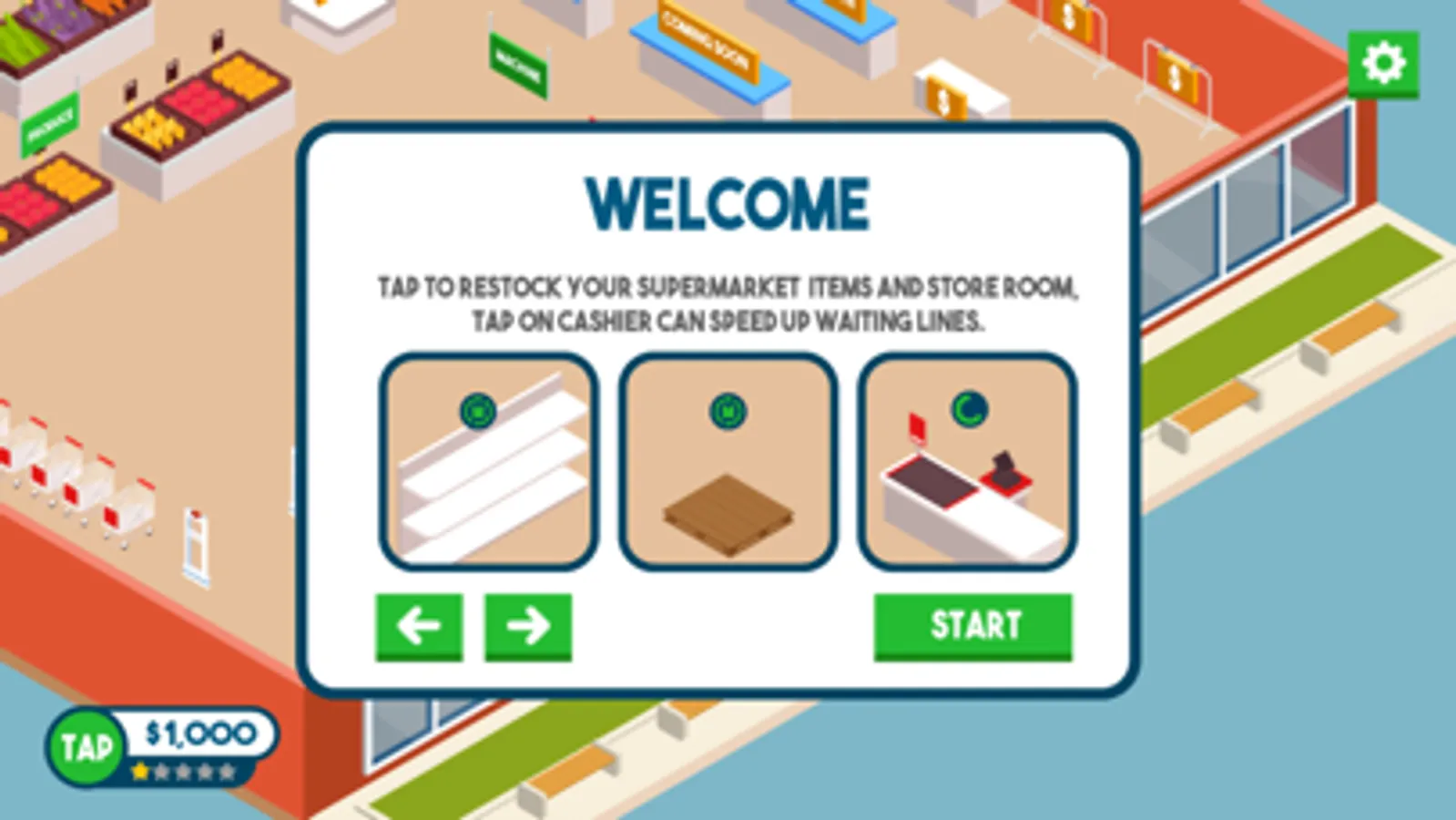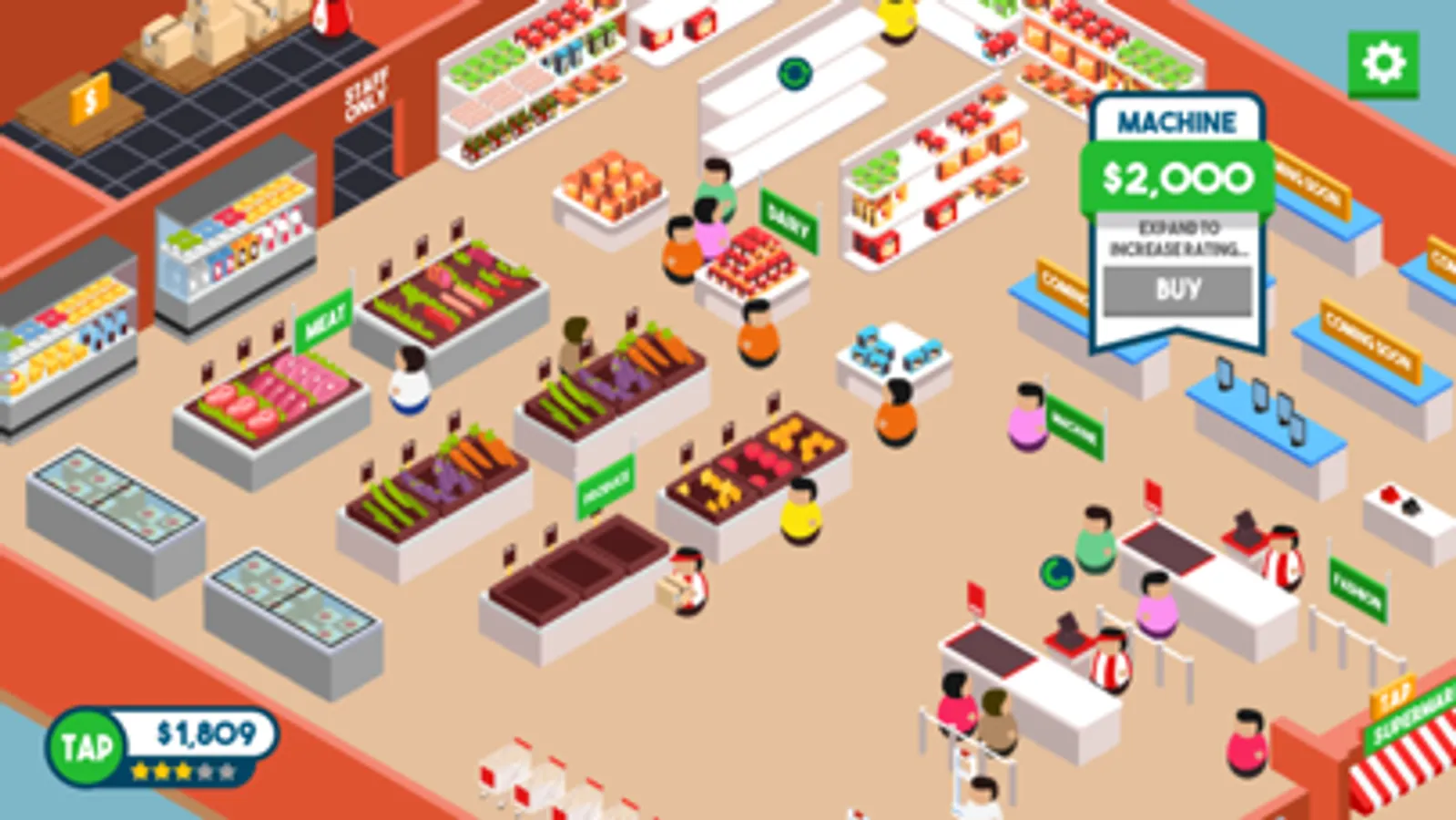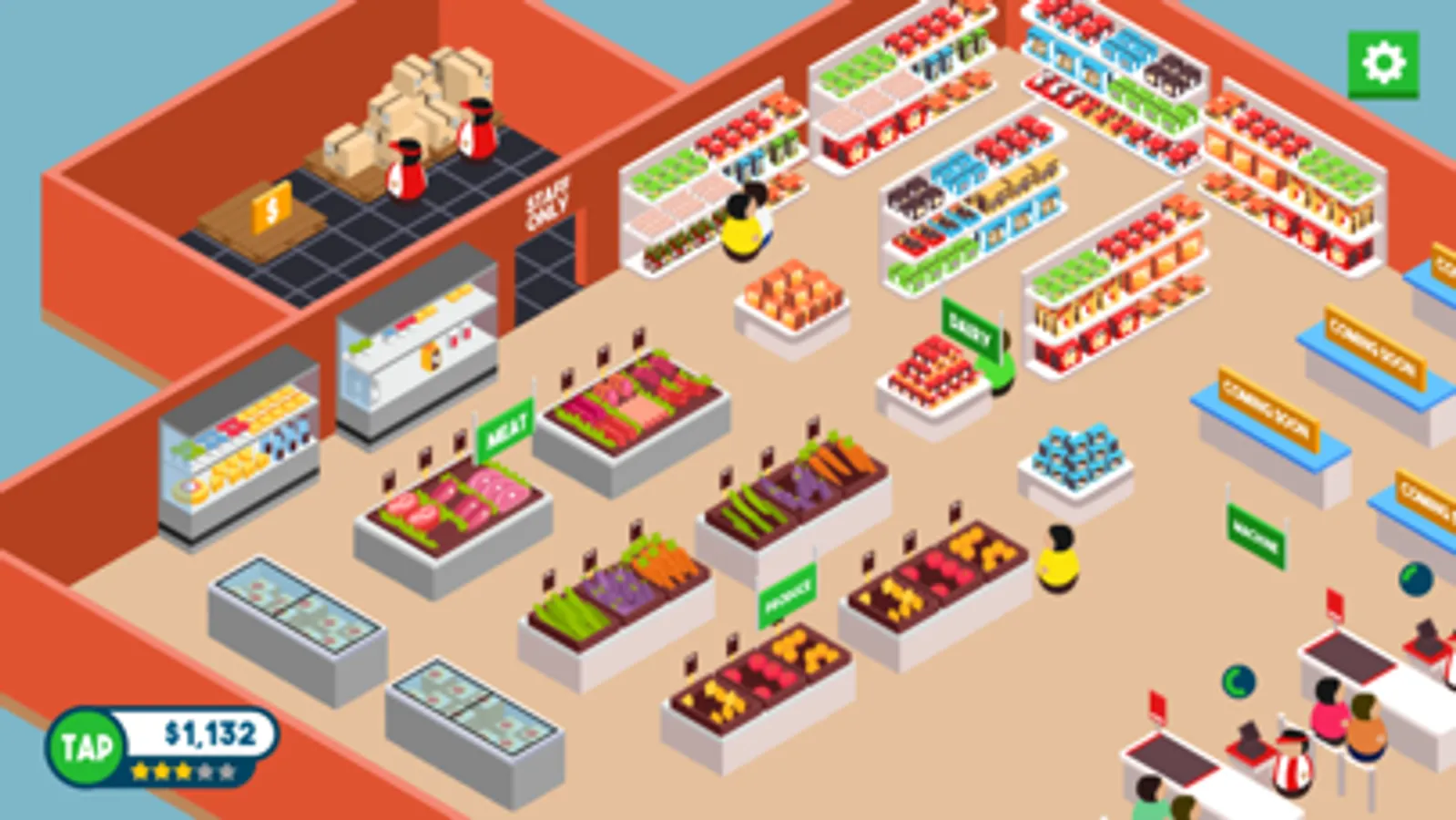 A huge supermarket has appeared in our city and you will become its manager, who will be responsible for literally everything. In addition, you should gradually expand the range of products by buying additional shelves and filling them to the top. Make sure that all goods are laid out; do not allow the buyer to stand in line at the cash register. Click on the cashier to receive money. They are needed for the purchase of goods, filling warehouses. If you see an empty rack or hanger, press and the movers will bring the goods. Let your store be filled with customers, and products never run out at Tap Supermarket.