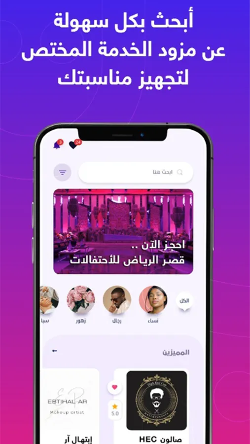 Such as: beauty, hospitality, arrangements, hotels, wedding halls, art shows, emerging projects