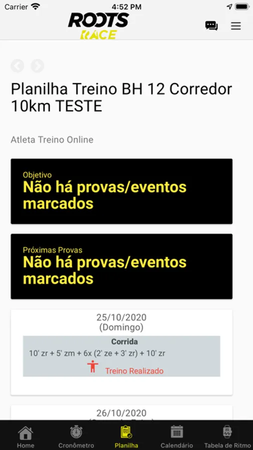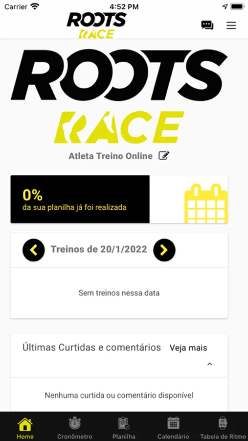 Aplicativo para os atletas da Assessoria Esportiva Roots Race que conta com as seguintes funcionalidades: