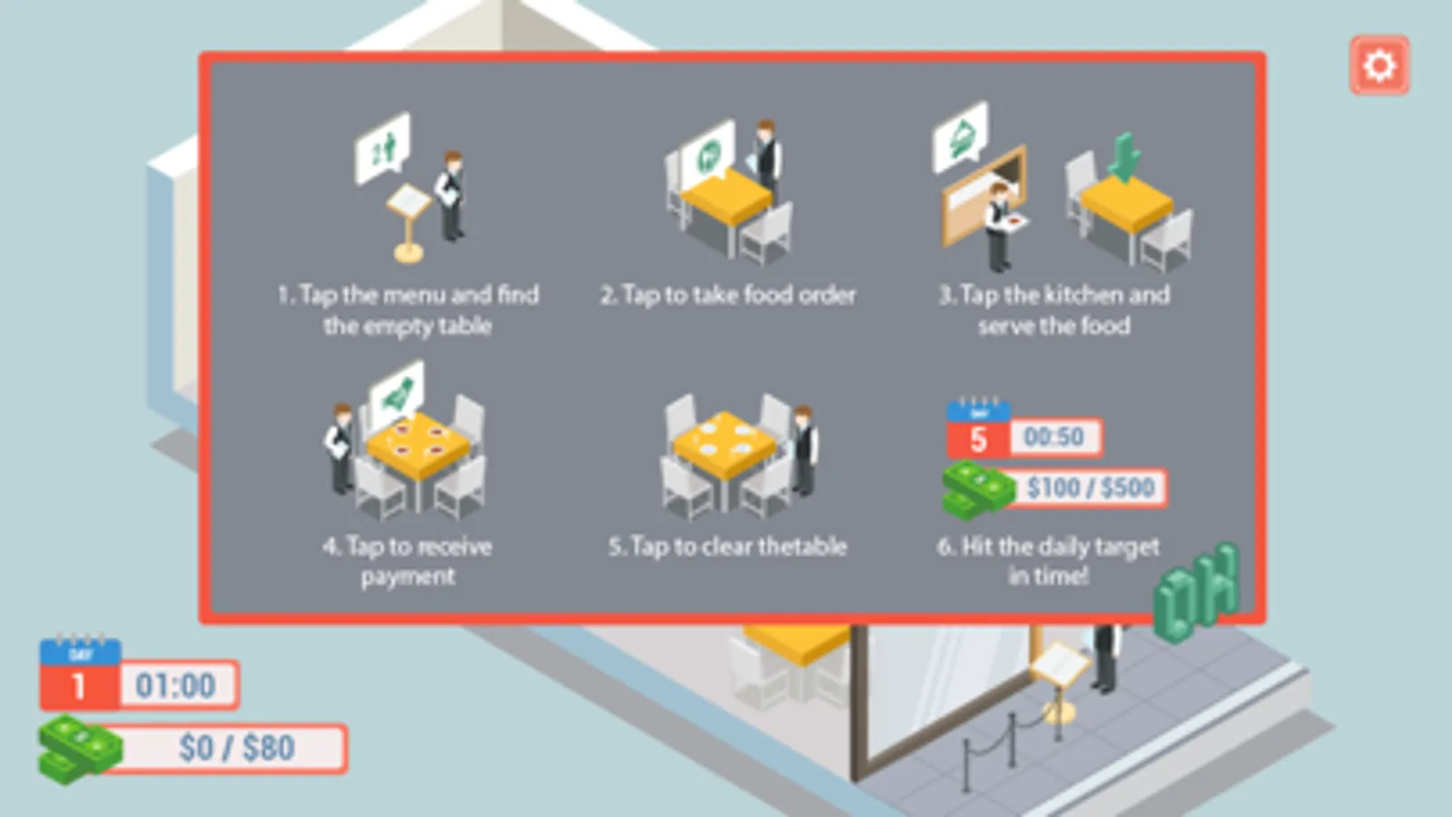 Open Restaurant is a fast-paced restaurant management game. Just as in most of many restaurant games, you need to seat the customers, take their orders, deliver their food, collect the bill, and clean the table. Do all of these actions quickly and efficiently to reach the daily target income to go to the next day. How many days can you manage?