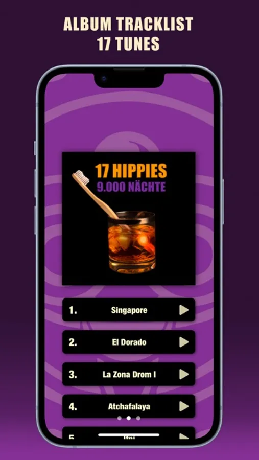 9.000 Nächte (9.000 Nights) is the album celebrating the 17 Hippies 25th jubilee. The app was developed by the band, letting you change tempo and style of what you hear.