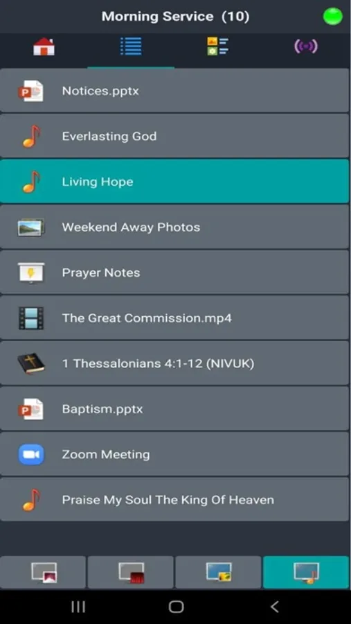 - 'Remote Viewer' mode offers a simple wireless display that synchronises to the live output from ZionWorx. This is ideal for people who can't easily see the 'big screen' but want to follow along on their personal device. Simplicity is key here; start the app and hit a single button to auto-connect.