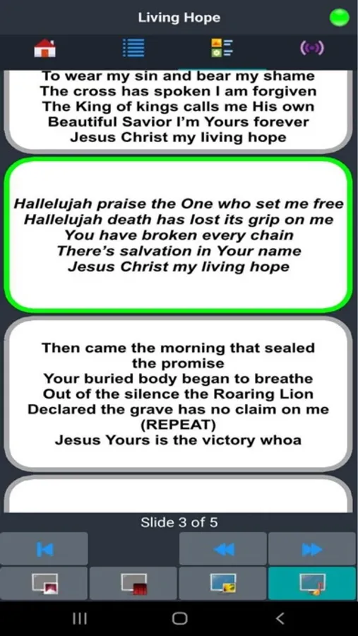- 'Remote Controller' mode offers all the necessary presentation controls to take control of the ZionWorx playlist wirelessly. Launch items remotely and take control of the slide changes for songs, PowerPoint slideshows and more. You can even play, pause, rewind and fast-forward video items. Switch to your logo screen or curtain screen at the click of a button.